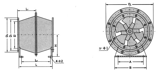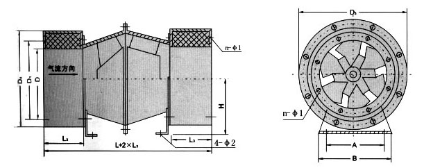 注:XGXF-Ⅰ型风机进出口加设消声器,可消声6-10dB(A),亦可加长消声器,以降底更大数值的噪声。