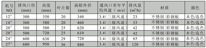 ⑥适用于工厂、仓库、大厦天台、别墅、天井、花房、禽畜养殖、矿山坑道及一切房顶的通气、换气。